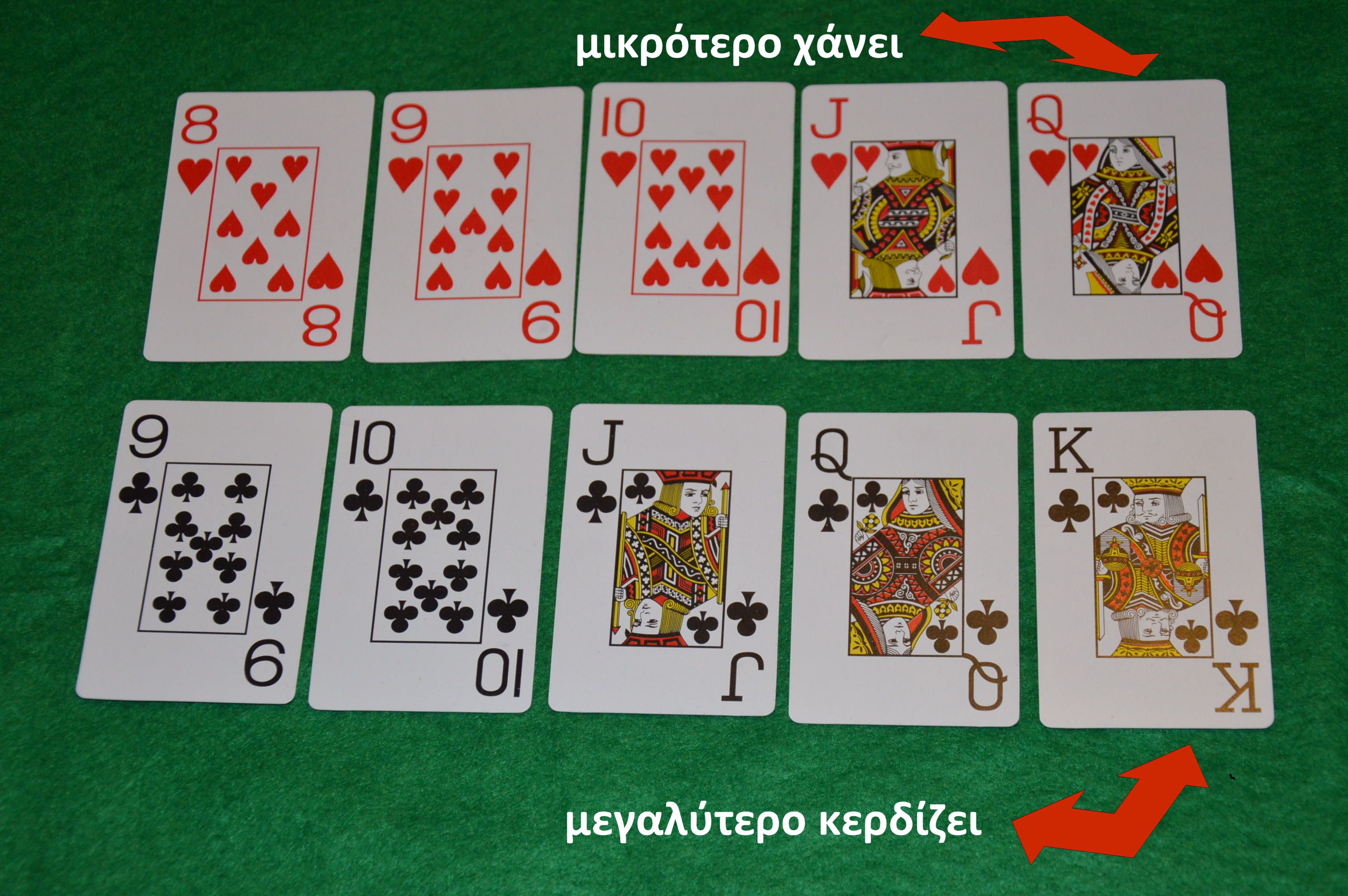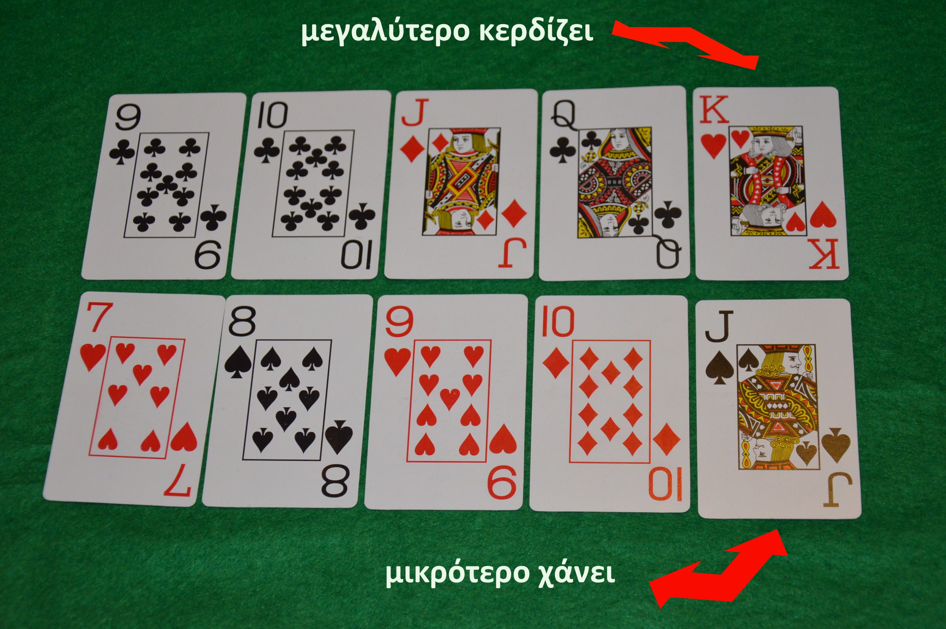 - από τα φύλλα που υπάρχουν στο τραπέζι, συμμετέχουν μέχρι τρία (3)