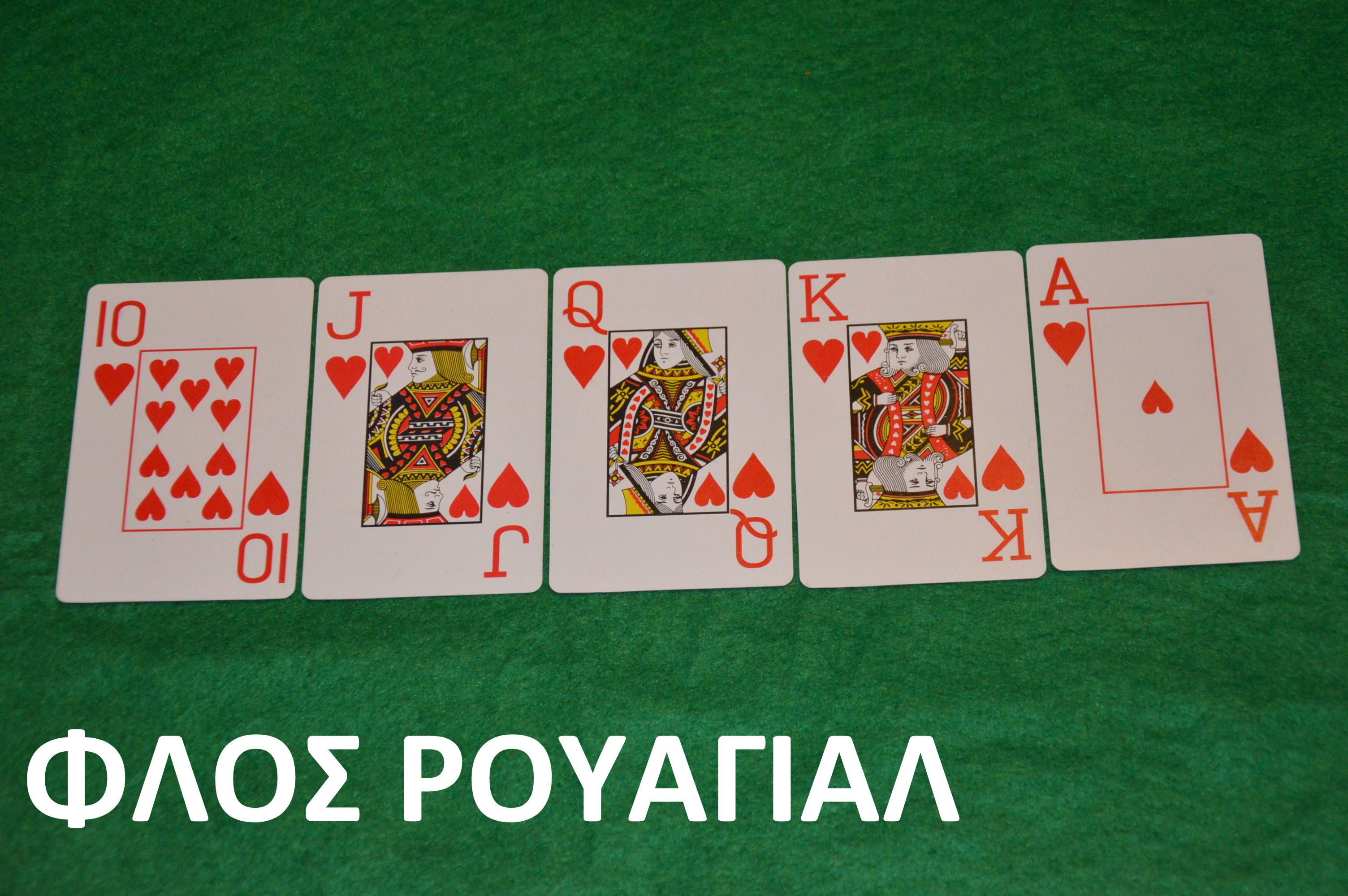 - ΦΛΟΣ ΡΟΥΑΓΙΑΛ. Πέντε φύλλα με αύξουσα σειρά με μεγαλύτερο τον Άσσο με ίδιο σχήμα.