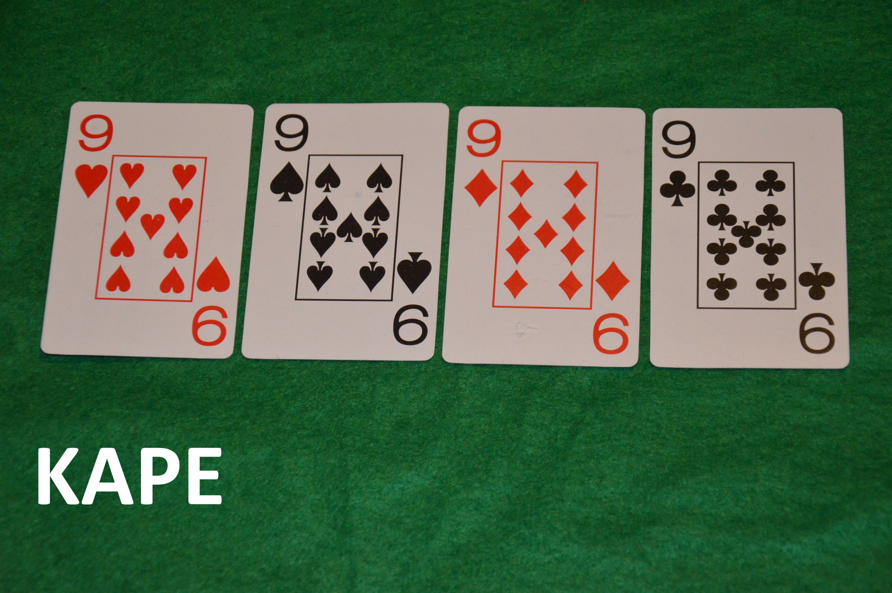 3. ΚΑΡΕ. Τέσσερα (4) όμοια φύλλα. Στο παράδειγμα έχουμε καρέ του εννέα